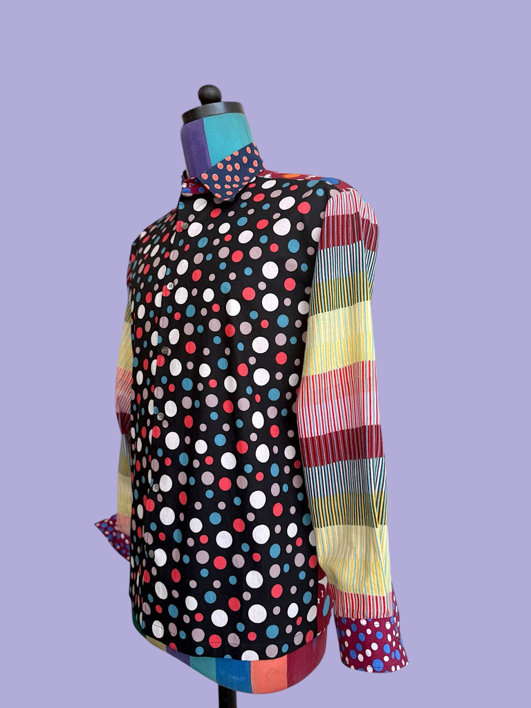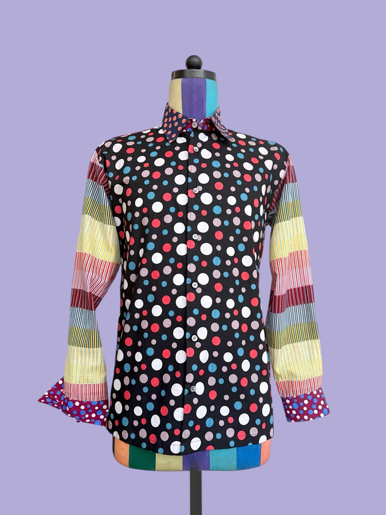 Cotton Shirt with Knitted Stripe Sleeves