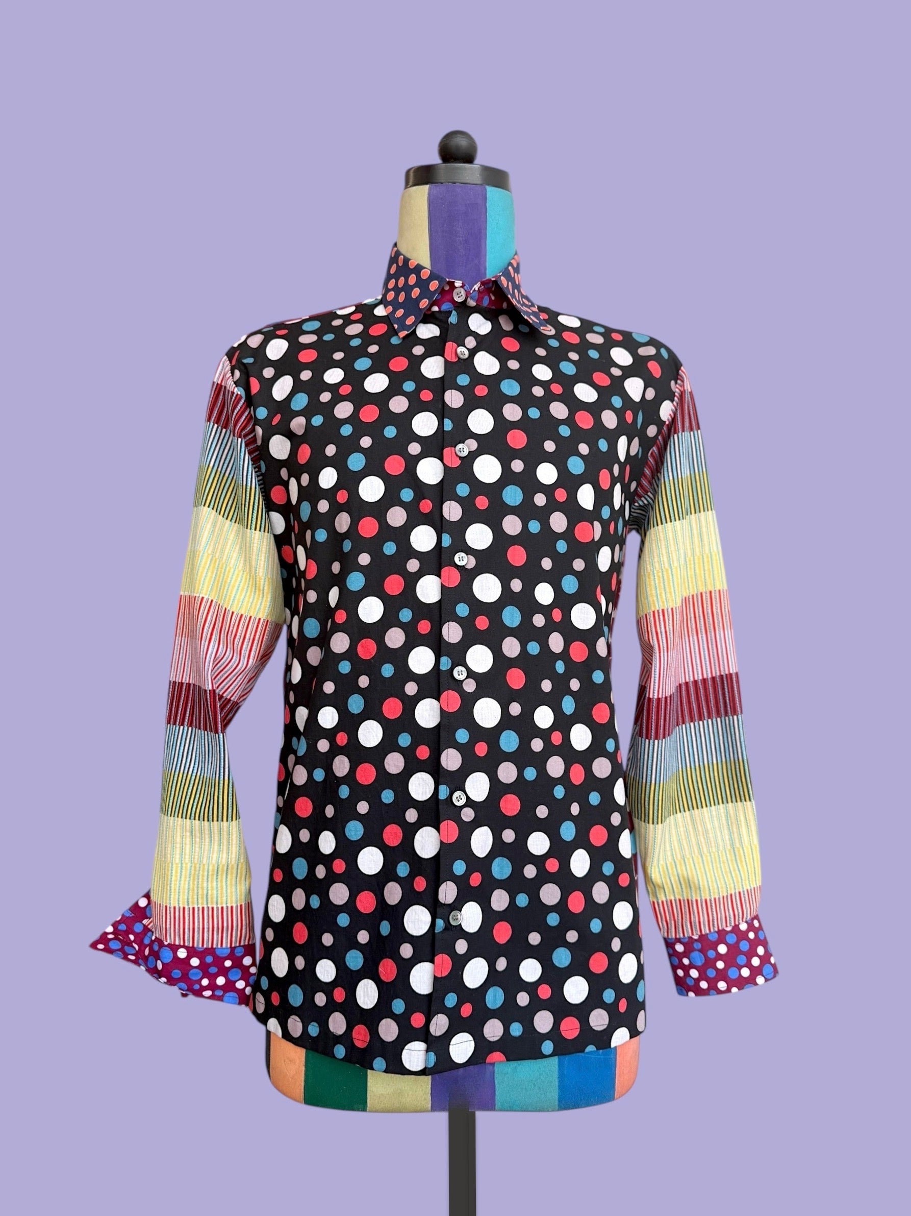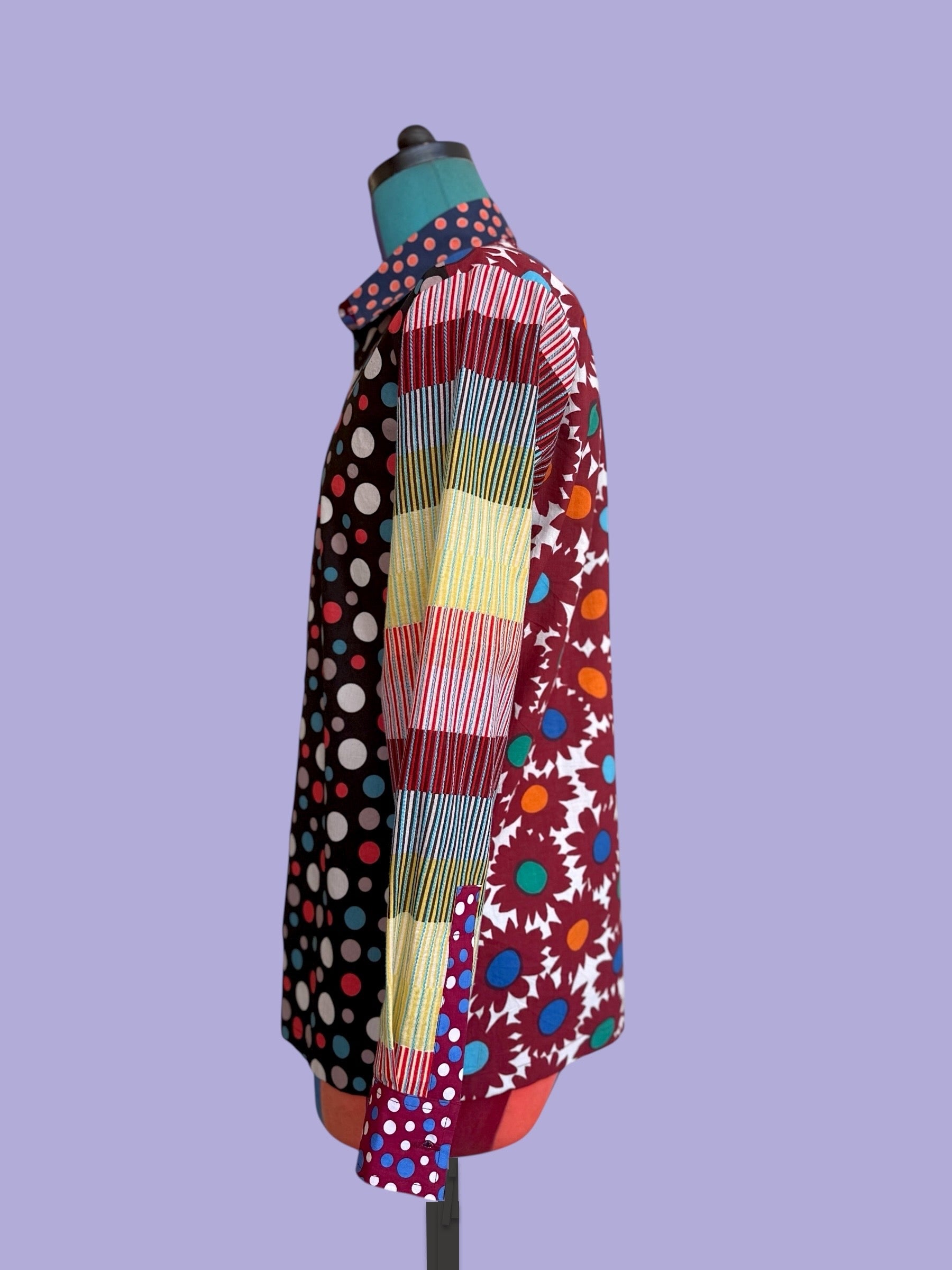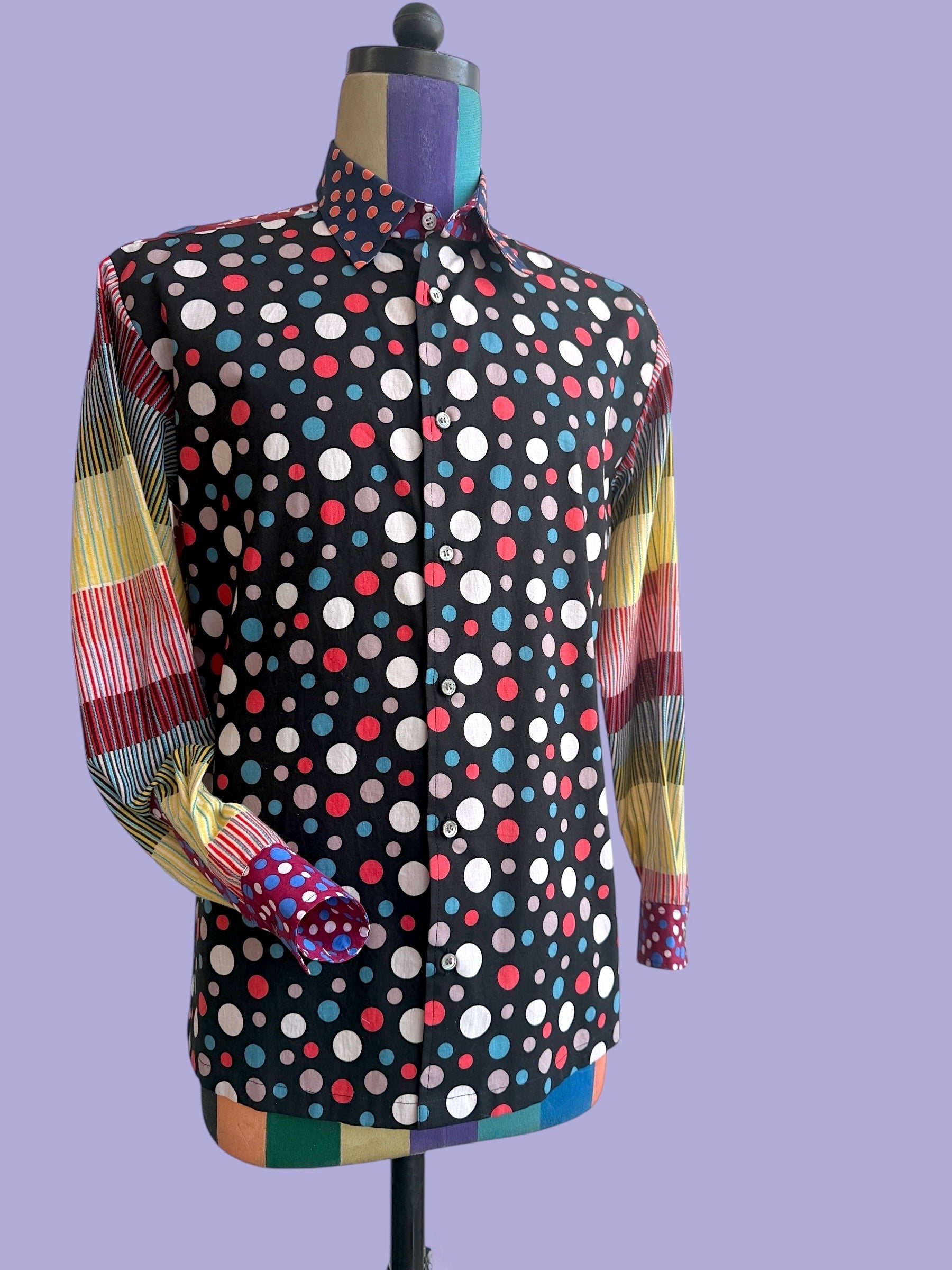 Collage of Dark Circles, Stripes and Flowers - M is backordered. We will ship it separately within 60 days - or sooner.
